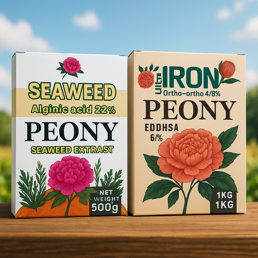 کود جلبک دریایی پیونی با نام Seaweed Peony و حاوی 22 درصد اسید آلجینیک است. کودهای جلبک دریایی به دلیل داشتن ترکیبات آلی، هورمون‌ های طبیعی رشد، اسیدهای آمینه و مواد مغذی، از بهترین تقویت‌کننده‌ ها برای تمامی گیاهان هستند.